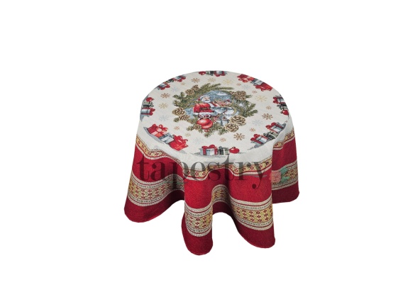 • Świąteczny obrus gobelinowy Ø 160 cm - Czerwony Mikołaj
